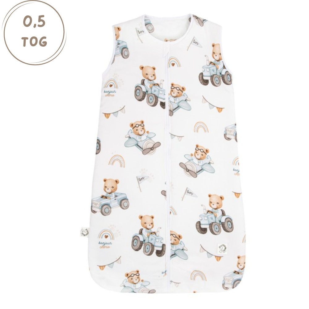 Bamboo sleeping bag TOG 0,5 (20-26°C) is made of extremely soft bamboo. It is ideal for cold nights and prevents the baby from freezing. It is nice to the touch, extremely comfortable and, above all, prevents the baby from drenching while sleeping. The sleeping bag not only looks beautiful, but also its design and workmanship gives the baby a lot of freedom of movement, and at the same time will keep the baby's body and legs covered at all times. Our sleeping bag is safe, because the zipper is detachable from the top and pulls, all the way to the legs, so there is easy and quick access to the baby.