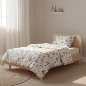 The set of pillowcases by Bonjour Cherie brand consists of one pillowcase measuring 40x60 cm and a comforter cover measuring 90x120 cm. It is ideal for 120x60 and 140x70 cribs.