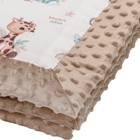 Double-sided blanket: one side made of soft high-quality cotton, which on the other side is complemented by soft minky plush. It can be used as a cover during daily naps and walks. The blanket is very lightweight, so it will be perfect for the spring-summer season.