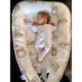 The cocoon will gently wrap the baby, give him comfort and a sense of security. It will work well both in a crib and in a deep stroller. You can take it anywhere you want to give your baby a peaceful and safe sleep. The cocoon has a variety of uses: in the parents' bed, as a protection against rolling and crushing the baby, in the crib - the high edges of the cocoon make it easier to place the baby on the side,in the stroller - the cocoon wraps the baby and absorbs shocks during walks....