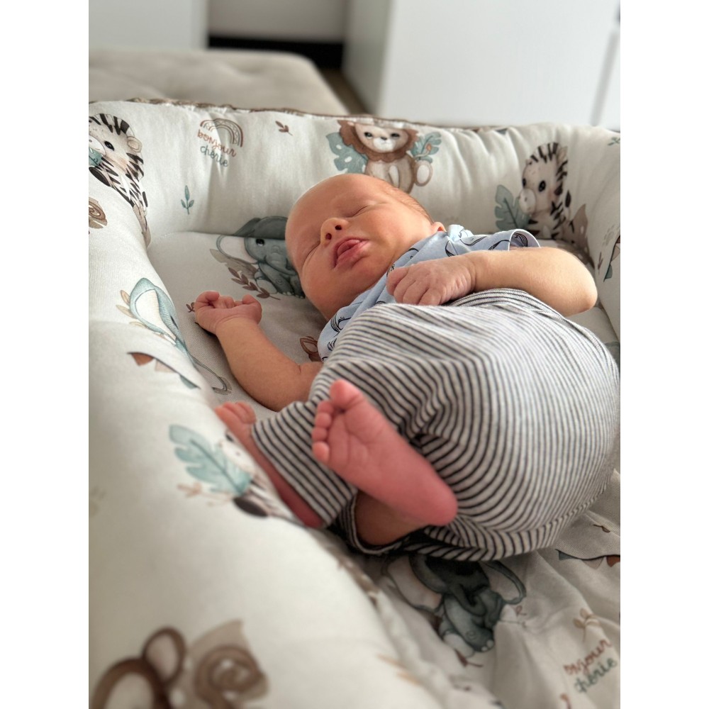The cocoon will gently wrap the baby, give him comfort and a sense of security. It will work well both in a crib and in a deep stroller. You can take it anywhere you want to give your baby a peaceful and safe sleep. The cocoon has a variety of uses: in the parents' bed, as a protection against rolling and crushing the baby, in the crib - the high edges of the cocoon make it easier to place the baby on the side,in the stroller - the cocoon wraps the baby and absorbs shocks during walks....