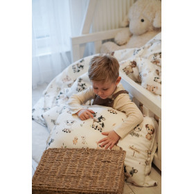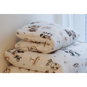 The center of the quilt is filled with anti-allergic high-fluff silicone fleece. It provides the baby with warmth and comfort during use. The quilt is ideal for the crib, for an afternoon nap in the nursery, as well as a favorite quilt for any trips or as a soft mat for the baby, due to its size also as a bedspread.