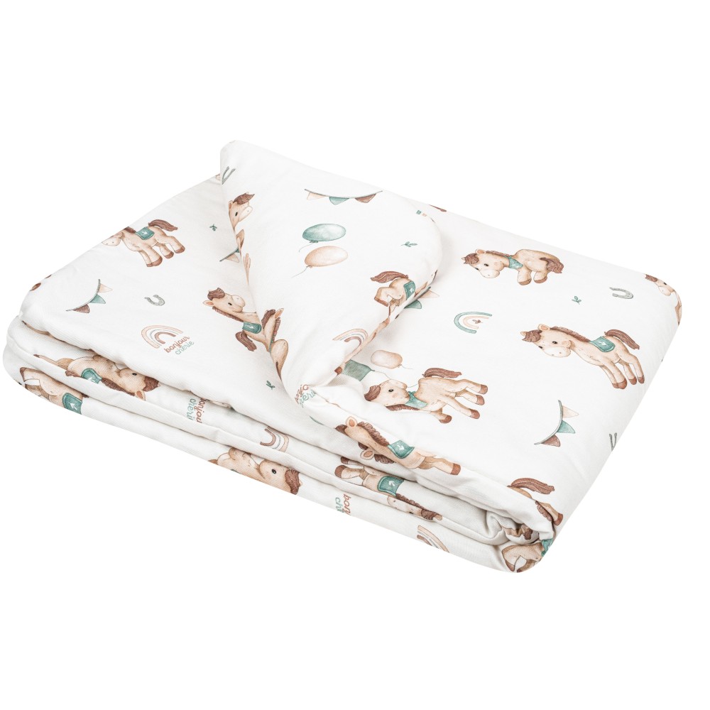 The center of the quilt is filled with anti-allergic high-fluffy silicone fleece. The quilt is ideal from the first days of life, in a crib, for an afternoon nap, in a stroller, in a baby carrier, as a favorite quilt for any trip or as a soft mat for the baby.