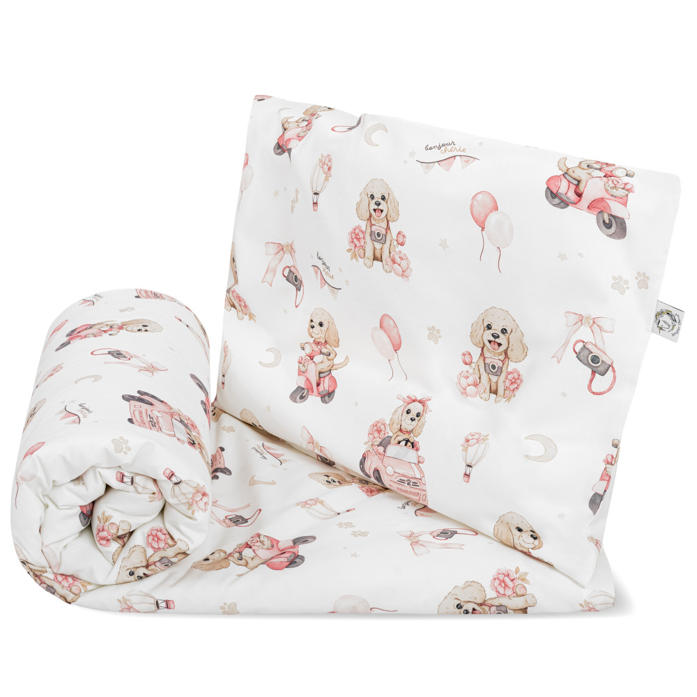 The set of pillowcases by Bonjour Cherie brand consists of one pillowcase measuring 50x70 cm and a comforter cover measuring 140x200 cm. It is ideal for use in 120x60 and 140x70 cribs.