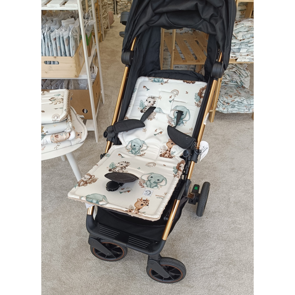 In addition, it is filled with springy soft foam. Thanks to the cotton fabric, the baby sweats less than sitting on the artificial material of the stroller. If it gets dirty, the insert is easier to wash than the entire upholstery in the stroller.