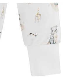 Unzipped baby bodysuit sewn from soft and delicate material, very pleasant to the touch. Made of carefully selected organic cotton. The bodysuit is fastened with anti-allergenic nickel-free fasteners. Convenient envelope closure makes it very easy to put on for parents.