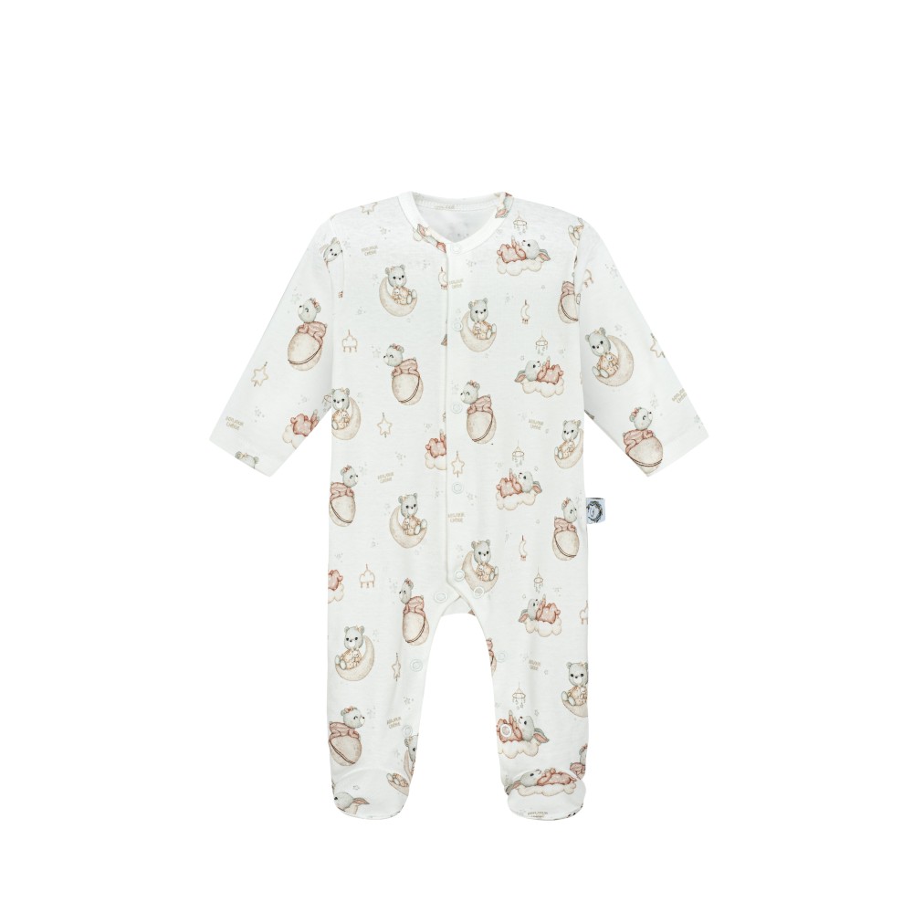 Unzipped baby pajacifier sewn from soft and delicate material, very pleasant to the touch. Made of carefully selected organic cotton. The pajacifier is fastened with anti-allergenic nickel-free fasteners.