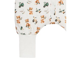 Our footed sleeping bag provides comfort and freedom of movement for your baby while sleeping. Thanks to the proper fit and elastic cuffs, the sleeping bag's legs do not hinder the movement of little legs, allowing them to move naturally in the crib. In addition, the zipper makes it easy to put on and take off the sleeping bag, which is especially important during overnight diaper changes. .