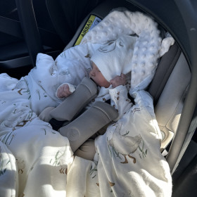 Our blanket has holes for the 3-point seat belts, allowing you to fasten them and carry your baby safely. The belt holes are suitable for a 0-13kg car seat (group 0/0+)