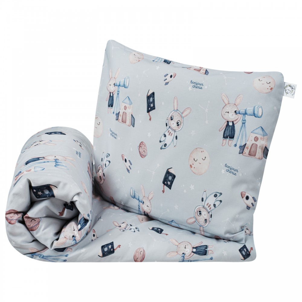 Komplet poszewek marki Bonjour Cherie składa się z jednej poszewki na poduszkę o wymiarze 70x80 cm i poszwy na kołderkę o wymiarze 160x200 cm. Idealnie sprawdzi się w łóżeczkach 120x60 oraz 140x70.