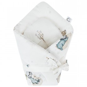 Bambusowy Becik Rożek wiązany z usztywnieniem Romantyczny Królik 74x74 cm