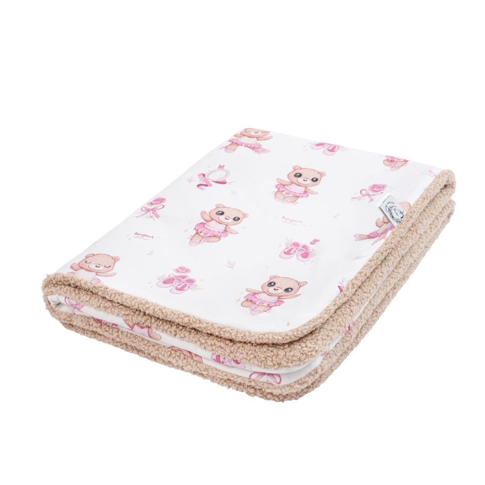 Kocyk wykonany jest z wysokogatunkowej bawełny 100%, którą z drugiej strony uzupełnia mięciutkie boucle