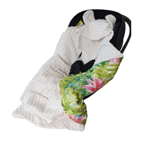 Przytulny i mięciutki kocyk, otulacz do fotelika samochodowego doskonały od narodzin dziecka.