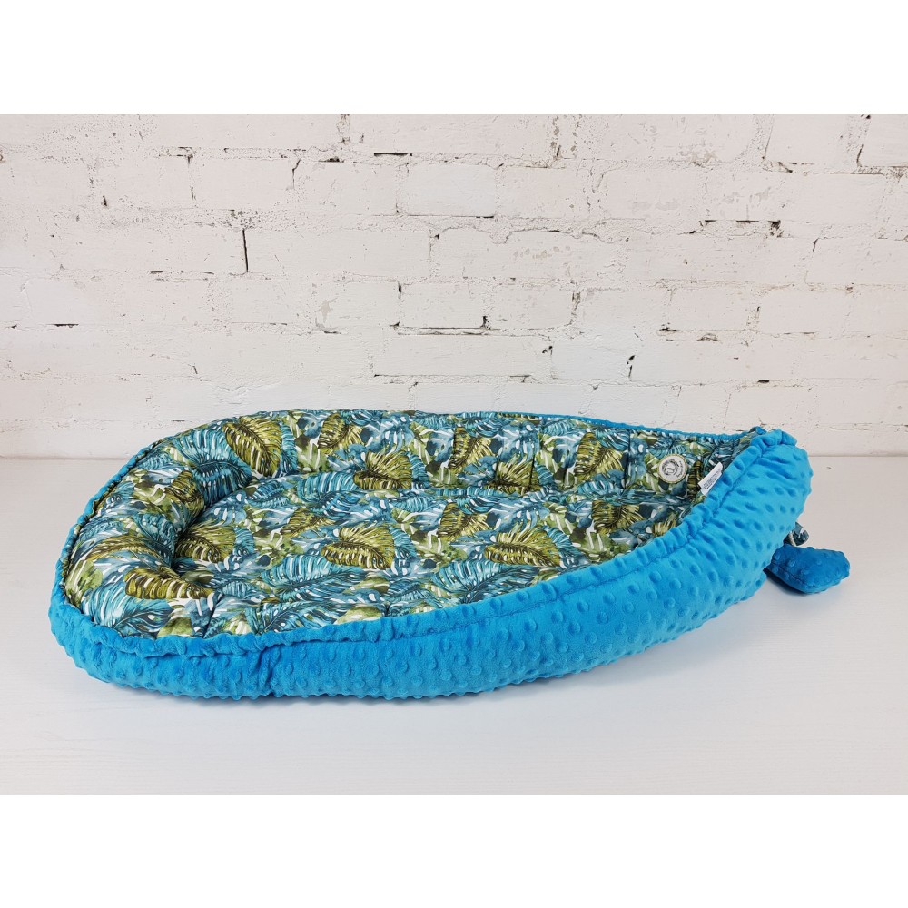 Dedykowany dla niemowląt od 0 do 6-8 miesięcy. Kokon wykonany jest z wysokogatunkowej bawełny 100%, którą z drugiej strony uzupełnia mięciutki plusz minky. Kokon jest dwustronny, wypełniony antyalergiczną kulką wysokopuszystą silikonową.