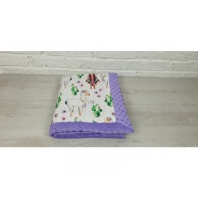Dwustronny kocyk: jedna strona z miękkiej wysokogatunkowej bawełny, którą z drugiej strony uzupełnia mięciutki plusz minky. Może służyć za okrycie podczas codziennych drzemek i spacerów. Kocyk jest bardzo lekki, dlatego świetnie sprawdzi się w sezonie wiosenno-letnim.