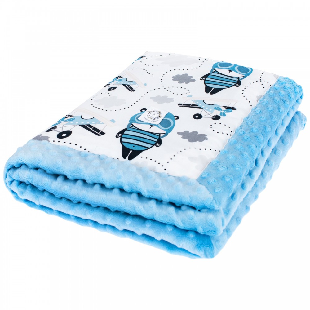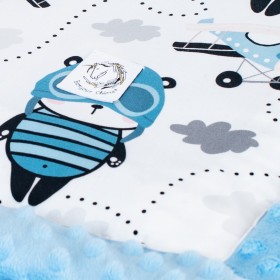 Dwustronny kocyk: jedna strona z miękkiej wysokogatunkowej bawełny, którą z drugiej strony uzupełnia mięciutki plusz minky. Może służyć za okrycie podczas codziennych drzemek i spacerów. Kocyk jest bardzo lekki, dlatego świetnie sprawdzi się w sezonie wiosenno-letnim.