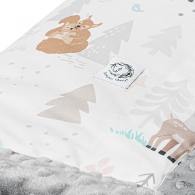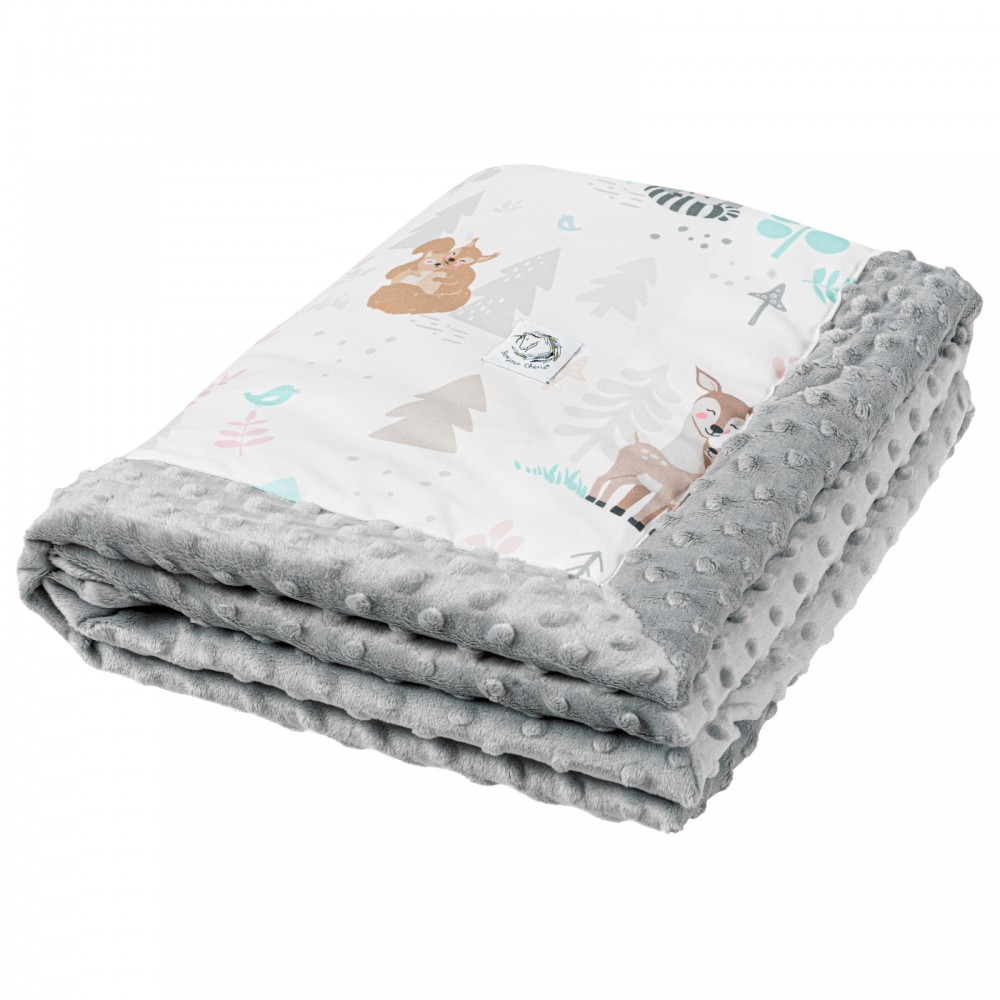 Dwustronny kocyk: jedna strona z miękkiej wysokogatunkowej bawełny, którą z drugiej strony uzupełnia mięciutki plusz minky. Może służyć za okrycie podczas codziennych drzemek i spacerów. Kocyk jest bardzo lekki, dlatego świetnie sprawdzi się w sezonie wiosenno-letnim.