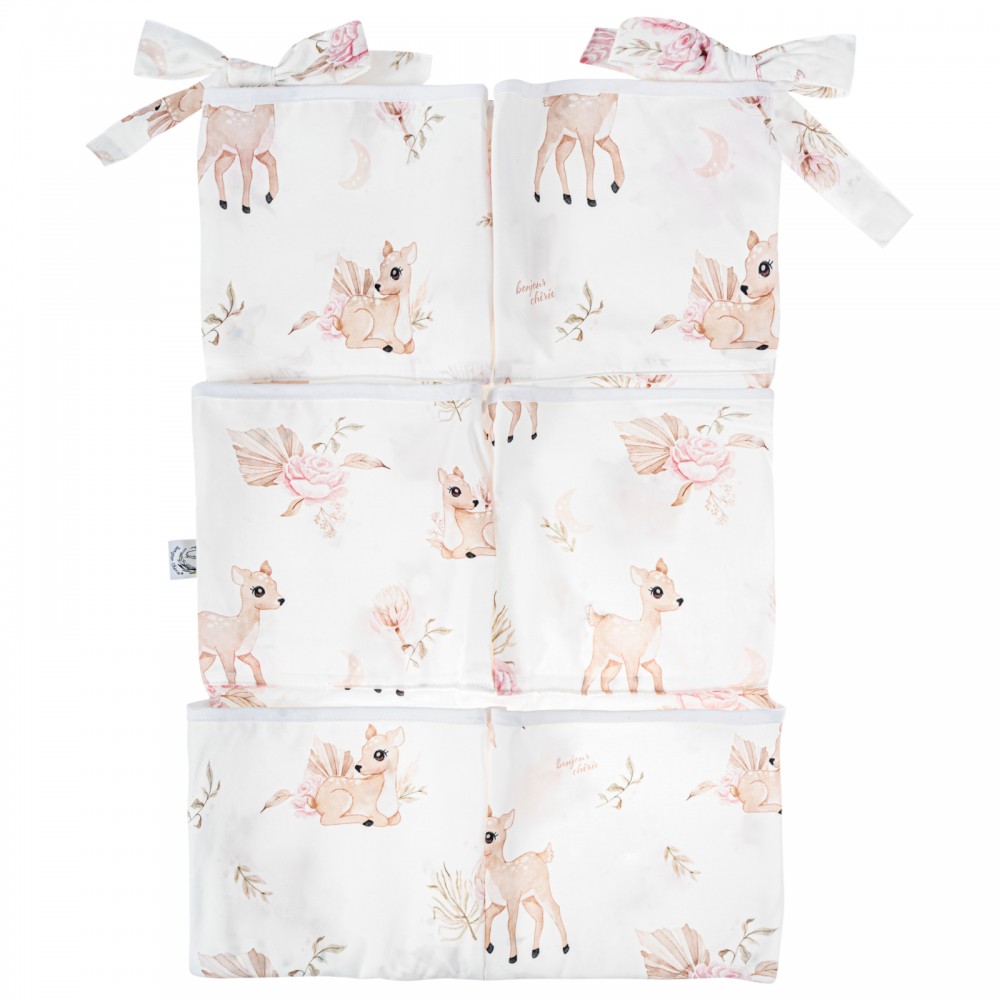 Organizer na łóżeczko dziecięce marki wykonany jest z wysokogatunkowej bawełny 100%.