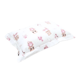 Uszyta z wysokiej jakości 100% bawełny, zachwyca swoją naturalną miękkością, trwałością i przewiewnością. Bawełna jest materiałem doskonałym do codziennego użytkowania — delikatna dla skóry, wytrzymała i łatwa w pielęgnacji. Subtelna falbana wokół krawędzi nadaje poduszce romantycznego, przytulnego charakteru i sprawia, że świetnie prezentuje się w łóżeczku, pokoju dziecka, na fotelu czy sofie.