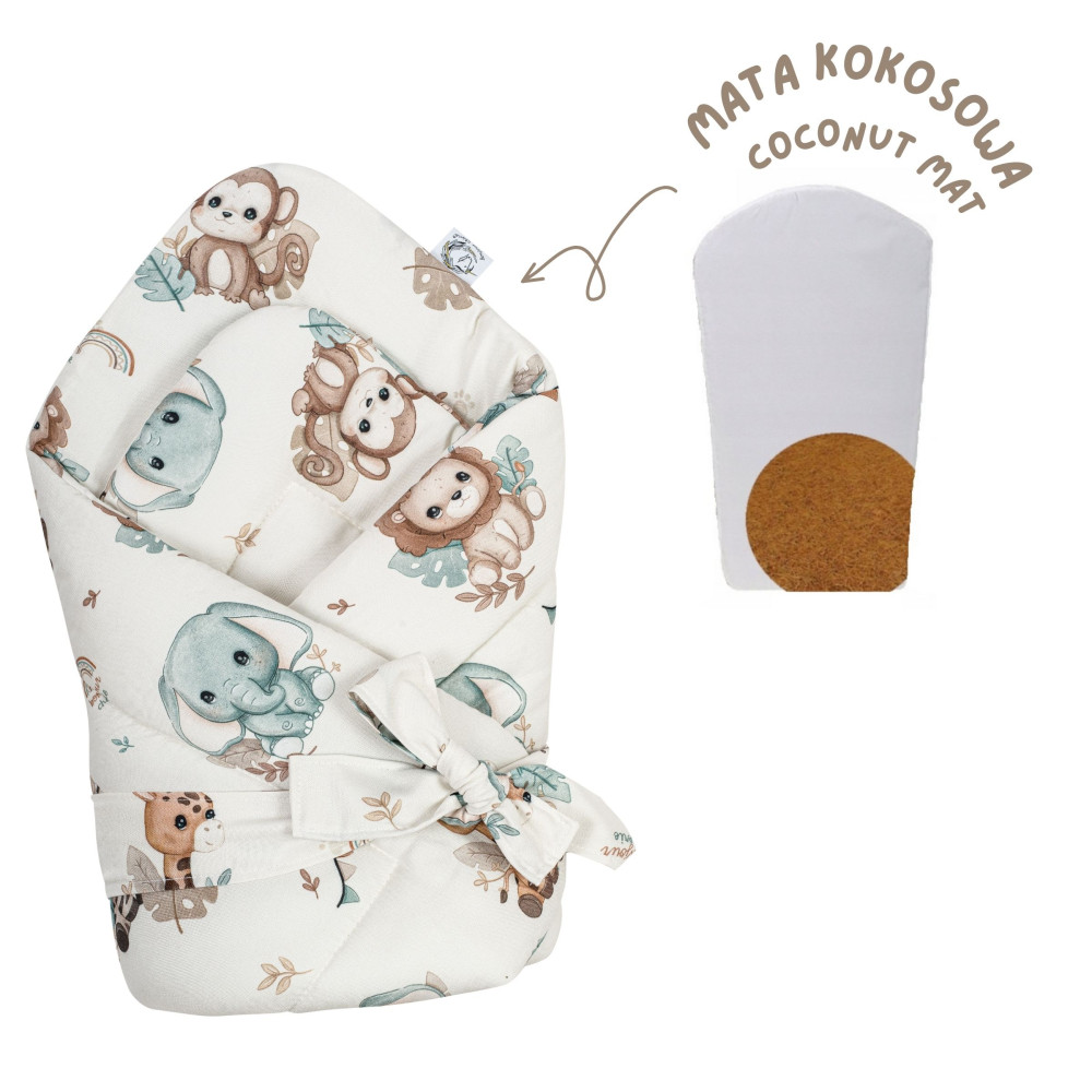 Po wyjęciu maty kokosowej może być również używany jako kocyk lub mata do zabawy pod kontrolą rodzica .Rożek wykonany jest z wysokogatunkowej 100% przędzy bambusowej, sprężyste wypełnienie przepuszczające powietrze i odprowadzające wilgoć zapewnia doskonały komfort. Dedykowany Maluszkom do około 4 miesiąca.