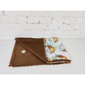 Dwustronny kocyk: jedna strona z miękkiej wysokogatunkowej bawełny, którą z drugiej strony uzupełnia mięciutki plusz minky. Może służyć za okrycie podczas codziennych drzemek i spacerów. Kocyk jest bardzo lekki, dlatego świetnie sprawdzi się w sezonie wiosenno-letnim.