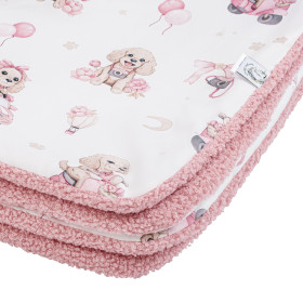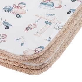Dwustronny kocyk: jedna strona z miękkiej wysokogatunkowej bawełny, którą z drugiej strony uzupełnia mięciutki plusz minky. Może służyć za okrycie podczas codziennych drzemek i spacerów. Kocyk jest bardzo lekki, dlatego świetnie sprawdzi się w sezonie wiosenno-letnim.