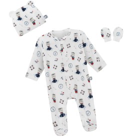 Materiał: 100% bawełna – naturalny, oddychający materiał, delikatny dla wrażliwej skóry niemowląt. Szyta z podwójnie złożonej bawełny. Nadaje się za równo na chłodniejsze dni jak również pod kombinezon.