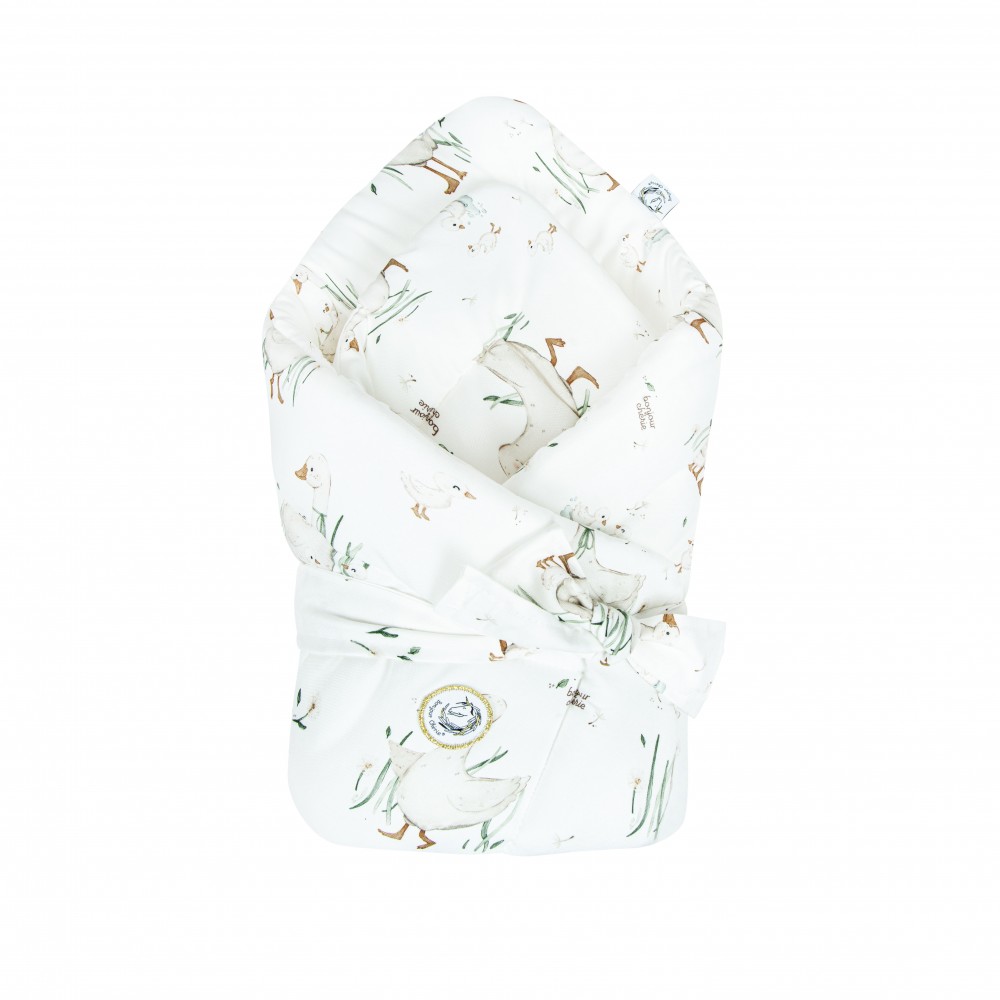 Bawełniany Becik Rożek wiązany niemowlęcy Gąski 74x74 cm