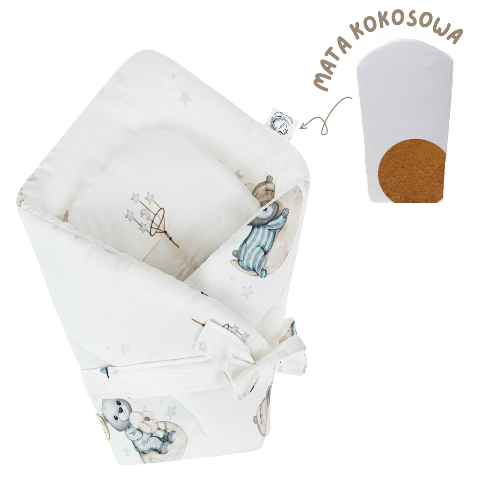 Bawełniany rożek niemowlęcy usztywniany z matą kokosową Misie 74x74 cm