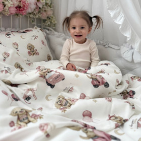 Zestaw pościeli bawełnianej Bonjour Cherie to propozycja dla rodziców, którzy szukają bezpiecznej, naturalnej i oddychającej pościeli dla swojego dziecka. Wszystkie produkty szyjemy ręcznie w Polsce – od projektu wzoru aż po gotowy komplet. Każdy motyw przygotowywany jest na nasze indywidualne zamówienie, dzięki czemu oferujemy unikalne i niepowtarzalne kolekcje.