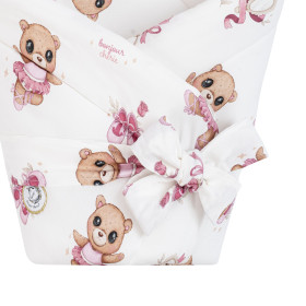 Rożek posiada piękną kokardę, dzięki której możemy regulować sposób jego wiązania. Sprawdzi się zarówno w łóżeczku jak i w wózku. Delikatnie otula Maluszka zapewniając mu bezpieczeństwo i komfort. Może być również używany jako kocyk lub mata do zabawy pod kontrolą rodzica.