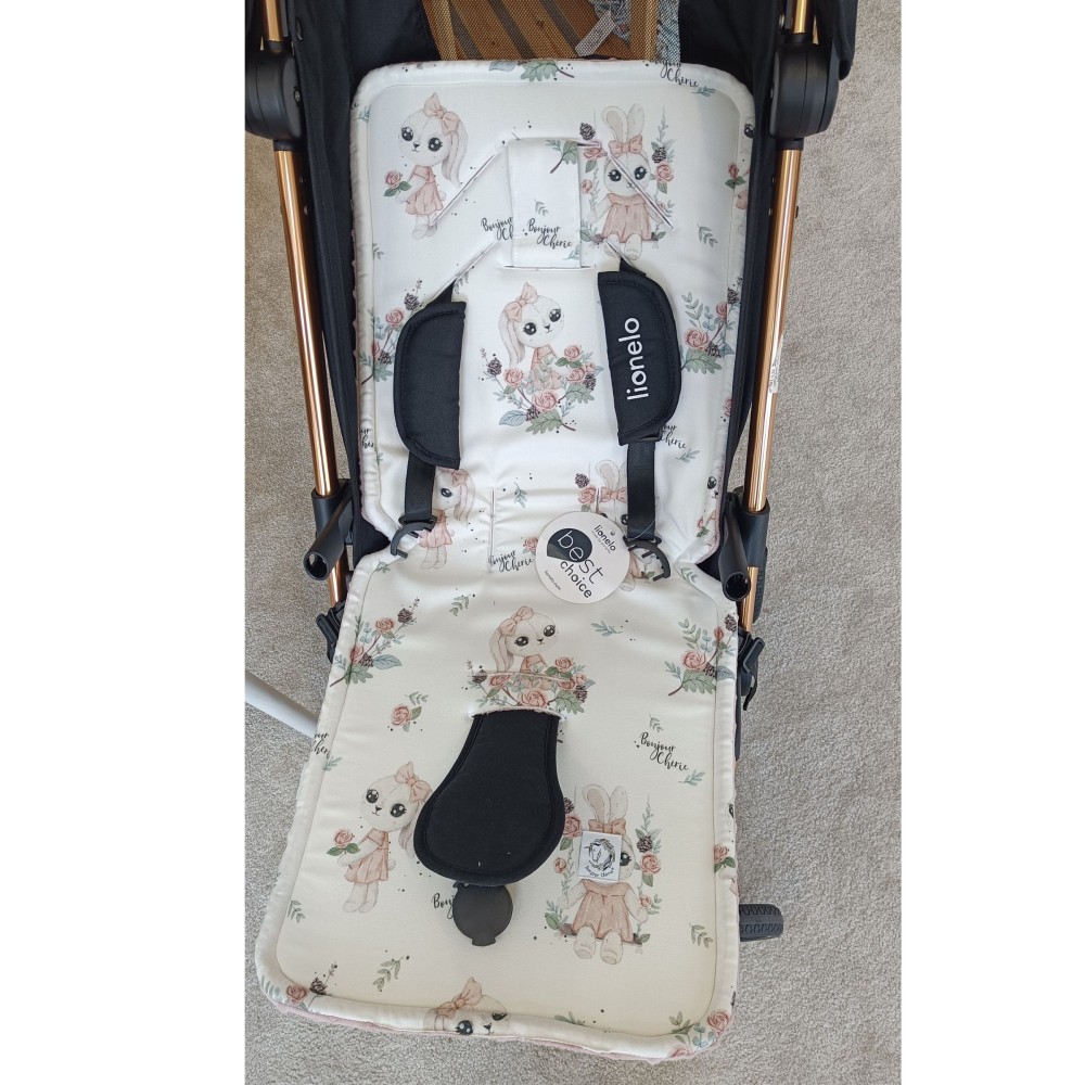 Dodatkowo wypełniona jest sprężystą, miękką pianką. Dzięki bambusowej tkaninie dziecko mniej się poci niż siedząc na sztucznym materiale wózka. W razie zabrudzenia wkładkę łatwiej uprać niż całą tapicerkę w wózku.