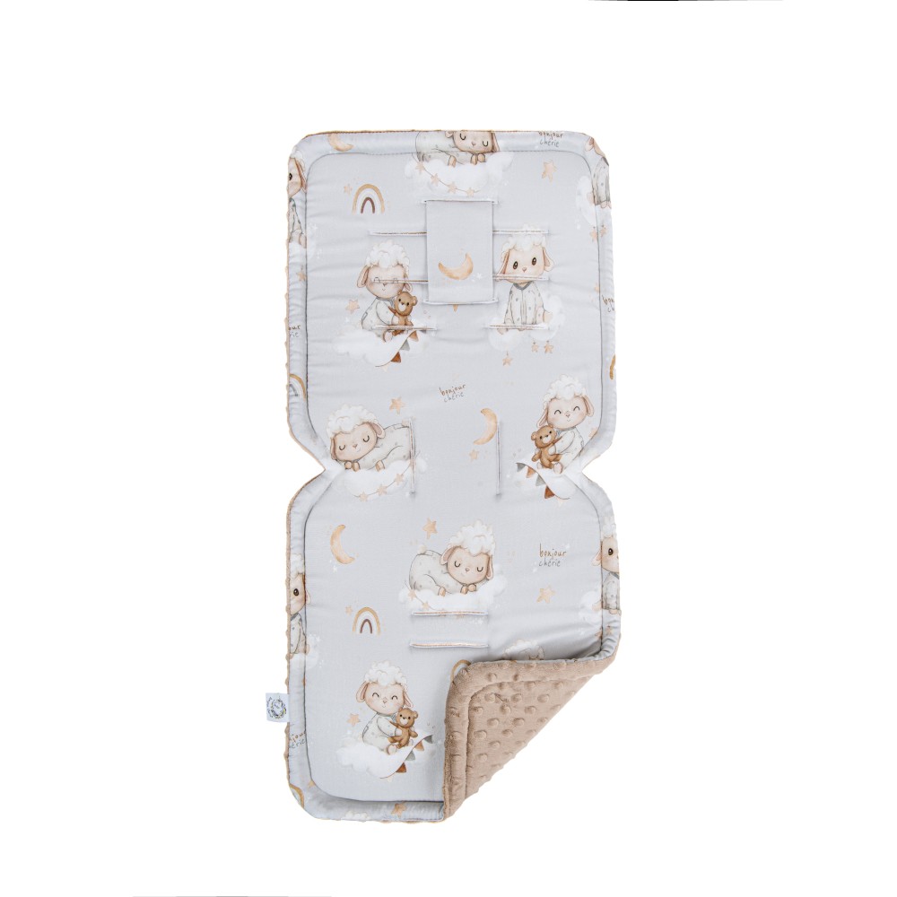 Bambusowa dwustronna Wkładka do wózka duża Owieczki 36x86 cm