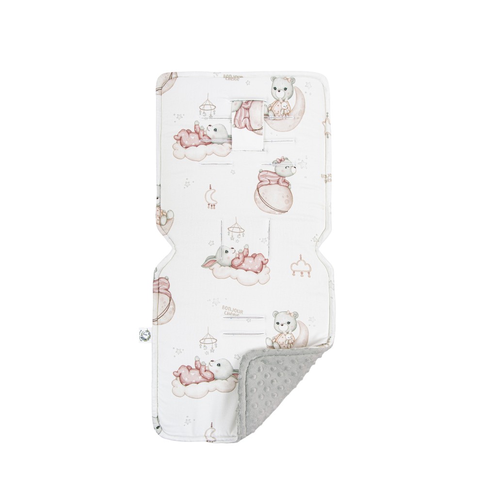 Wkładka do wózka w uniwersalnym rozmiarze. Wykonana jest ze z wysokogatunkowej 100% przędzy bambusa oraz miękkiego pluszu minky.