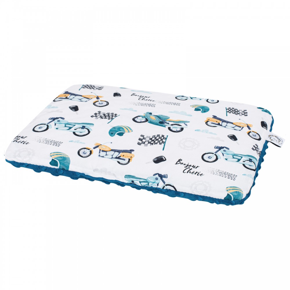 Płaska poduszeczka dla najmłodszych, wykonana jest z wysokogatunkowej bawełny 100%, którą z drugiej strony uzupełnia mięciutki plusz minky. Środek poduszki wypełniony jest antyalergiczną włókniną wysokopuszystą silikonową.